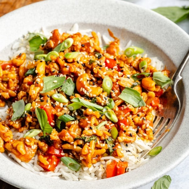Sweet and spicy gochujang chicken bowls made with a flavorful sauce, beautiful veggies, and plenty of protein from lean ground chicken. These easy, one pan basil chicken bowls take just 30 minutes to make for the perfect weeknight meal! Options to serve with fresh garnishes over rice or noodles.