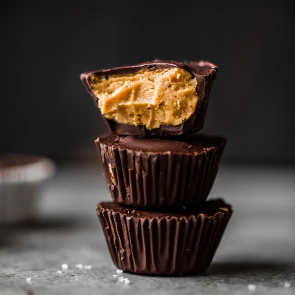 Healthy peanut butter cups that are easy to make right at home and are low carb, low sugar, vegan, and gluten free. Keep these homemade peanut butter cups in the fridge or freezer when you need a quick, delicious treat!